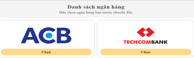 Thông tin tài khoản ngân hàng sẽ hiện ra, Bước tiếp theo vui lòng đăng nhập vào ngân hàng trực tuyến hoặc quét mã QR để thực hiện chuyển khoản. Lưu ý: Quý Khách cần nhập mã OTP do ngân hàng cung cấp qua tin nhắn để hoàn tất xác nhận giao dịch.