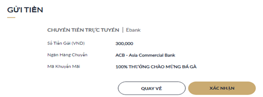 Một lần nữa, nhấp "Xác Nhận" để xác nhận thông tin gửi tiền.
