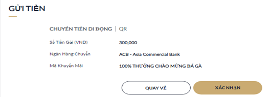 Một lần nữa, nhấp "Xác Nhận" để xác nhận thông tin gửi tiền.