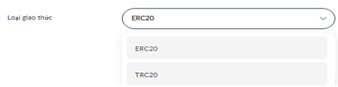 Chọn giao thức ERC20 hoặc TRC20.