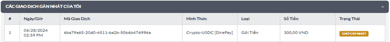 Vui lòng kiểm tra trạng thái và lịch sử gửi tiền của Quý Khách tại "CÁC GIAO DỊCH GẦN NHẤT CỦA TÔI"