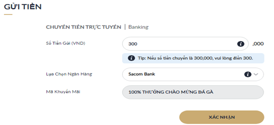 Nhập số tiền muốn gửi và Chọn ngân hàng để gửi tiền sau đó nhấp " Xác Nhận"