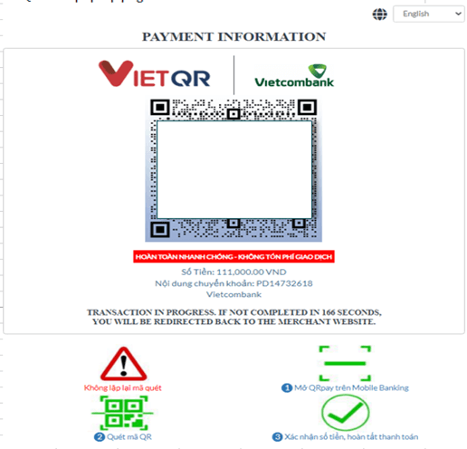 Cửa số mới sẽ hiện QR code và mã tham chiếu trong mục "NỘI DUNG CHUYỂN KHOẢN".
