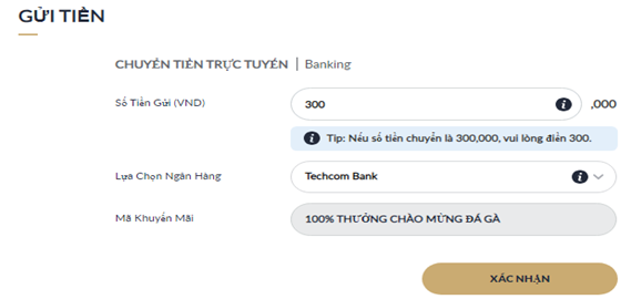 Nhập số tiền muốn gửi và Chọn ngân hàng để gửi tiền sau đó nhấp " Xác Nhận"
