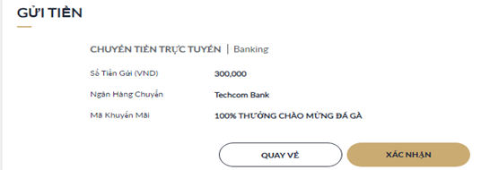 Một lần nữa, nhấp "Xác Nhận" để xác nhận thông tin gửi tiền.