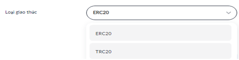 Chọn loại giao thức ERC20 hoặc TRC20 muốn rút