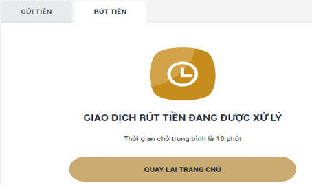 Yêu cầu rút tiền sẽ được xử lý trong vòng 10 phút.