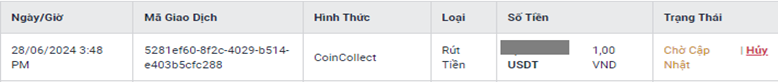 Chọn phương thức "Coin Collect" tại Rút Tiền.